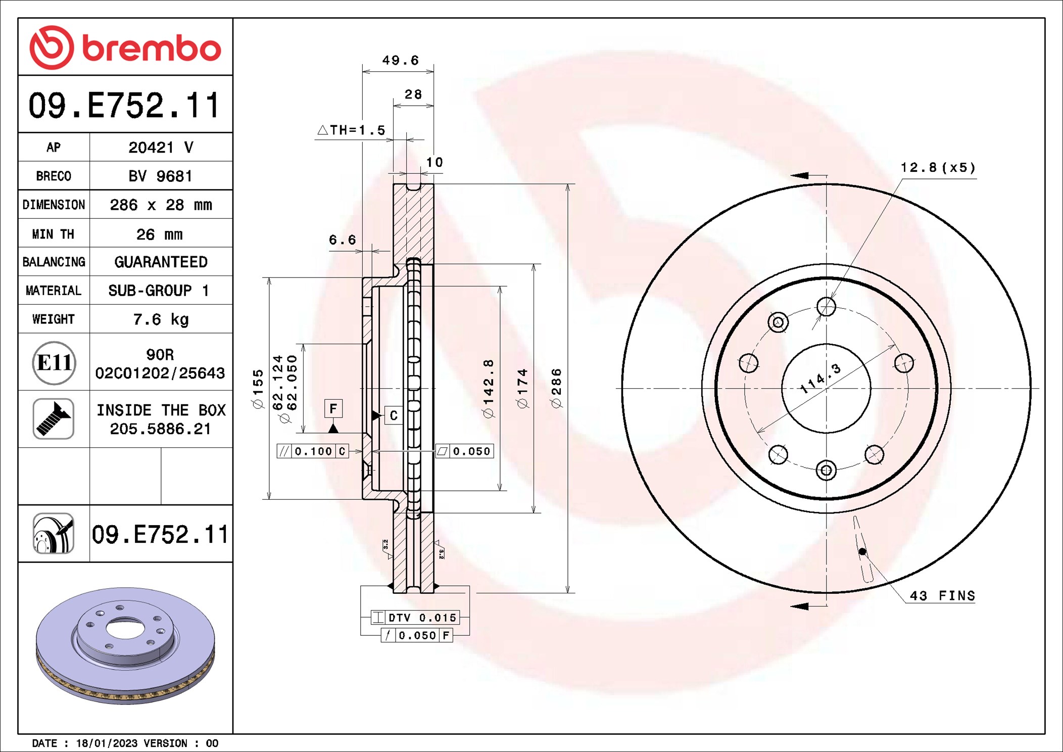 Disc frana 09.E752.11 BREMBO