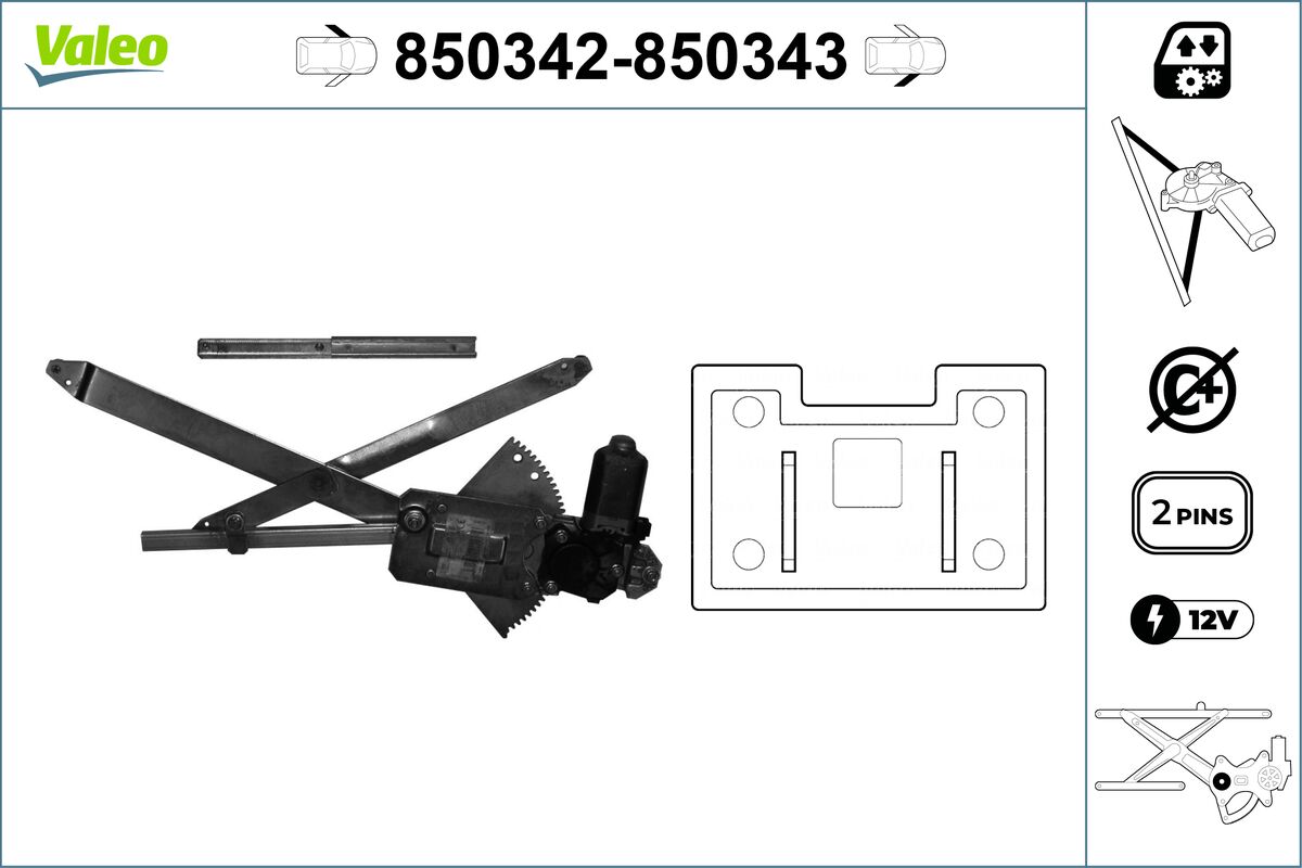 Mecanism actionare geam 850342 VALEO