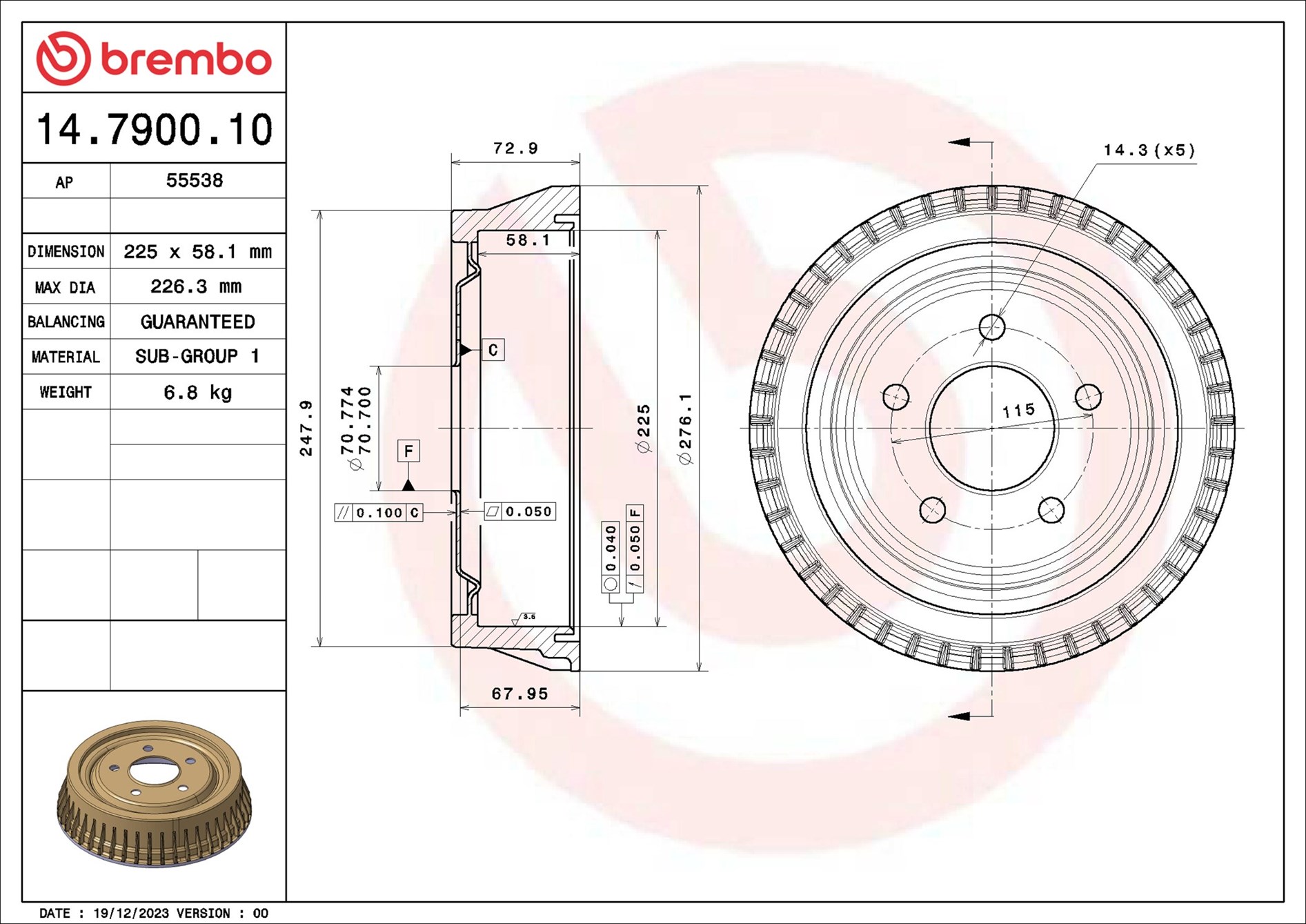 Tambur frana 14.7900.10 BREMBO
