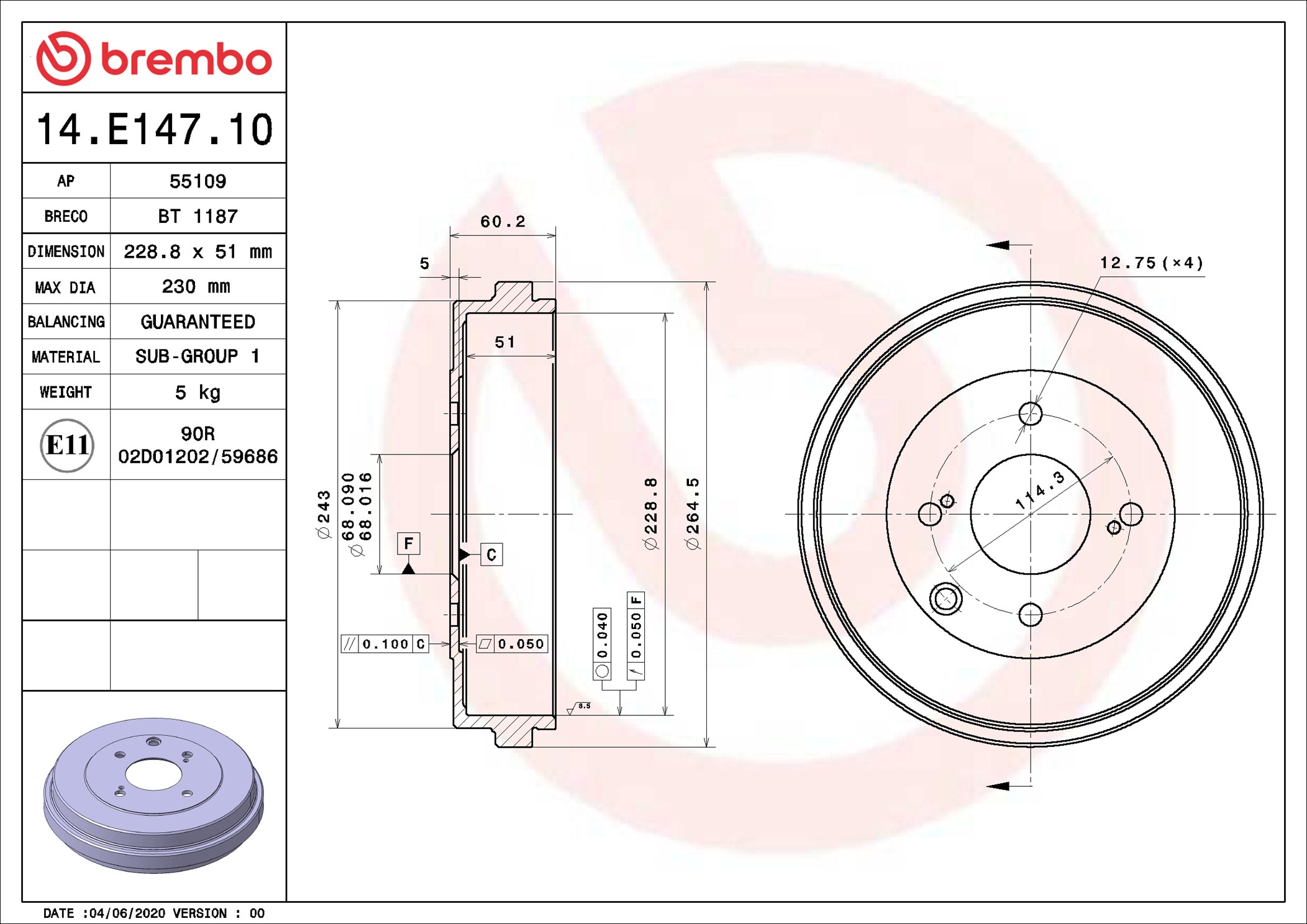 Tambur frana BT 1187 BRECO